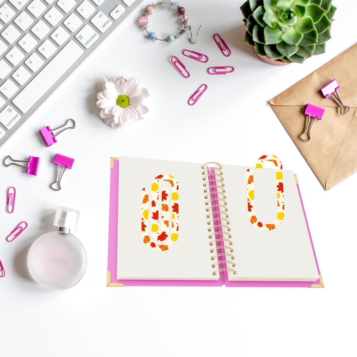 The Golden Autumn Paperclip brings the beauty of fall to your stationery collection. Featuring a festive pattern of golden yellow dots and bright autumn leaves in warm red and orange tones, this paperclip is both functional and stylish. Perfect for adding a seasonal touch to planners, journals, or office documents, it keeps your papers neatly clipped while showcasing a cozy fall aesthetic.