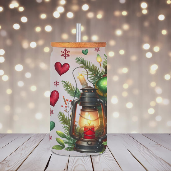 Celebrate the cozy magic of the holidays with our All Booked for Christmas Glass Can Cup. Designed for book lovers and festive spirits alike, this charming glass cup features a warm Christmas scene filled with stacked vintage books, glowing lantern light, classic ornaments, holly, pine greenery, and an adorable snowman dressed for winter cheer.