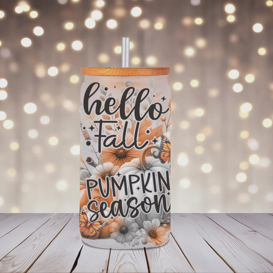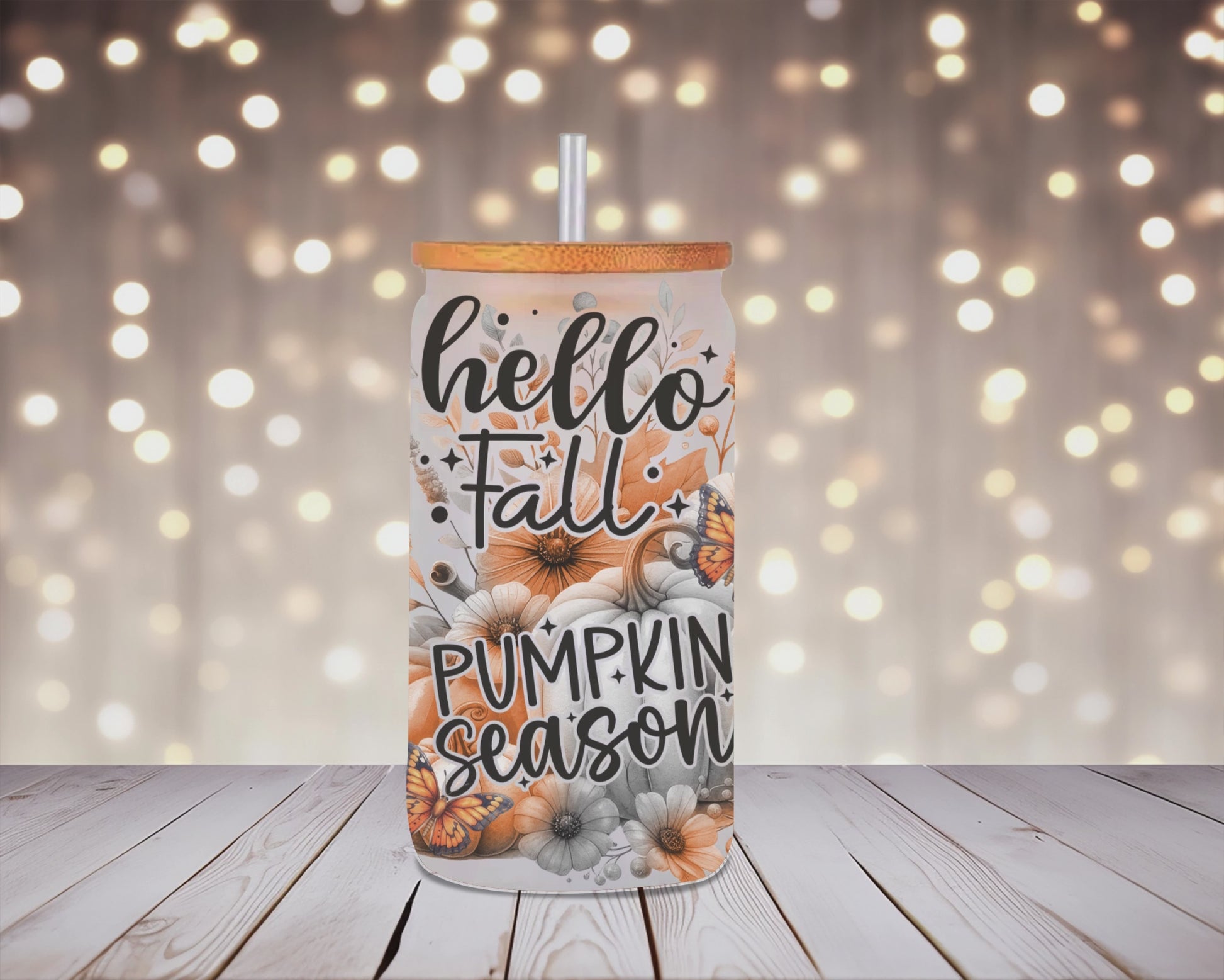 Celebrate the magic of fall with our Autumn Harvest Seasonal Message Glass Can—a charming 16oz frosted glass can designed to bring cozy vibes to every sip. This beautifully illustrated glass features warm pumpkin tones, soft neutral florals, butterflies, and three uplifting fall sayings:
