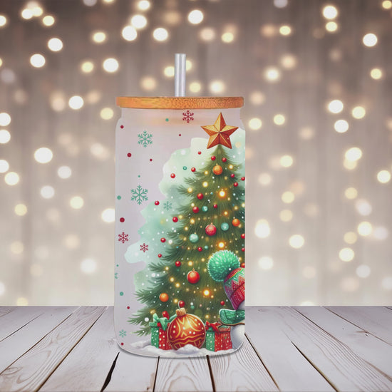 Celebrate the magic of the holidays with our Cozy Christmas Snowman Glass Can, a charming and festive drinkware piece designed to make every sip feel merry and bright. This premium frosted glass can features an adorable winter scene showcasing cheerful snowmen dressed in colorful knit hats and scarves, nestled beside a beautifully decorated Christmas tree glowing with ornaments, gifts, and twinkling lights.