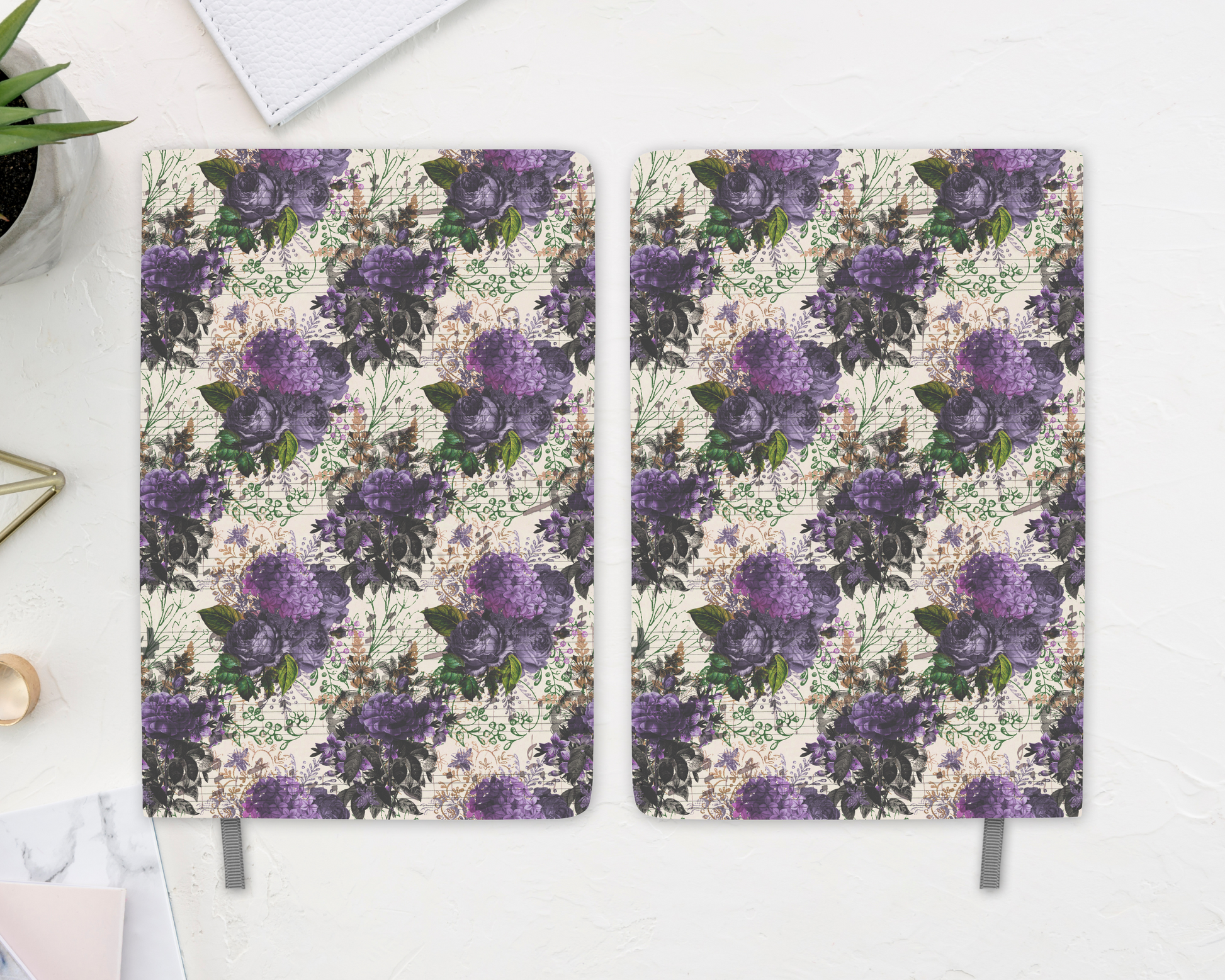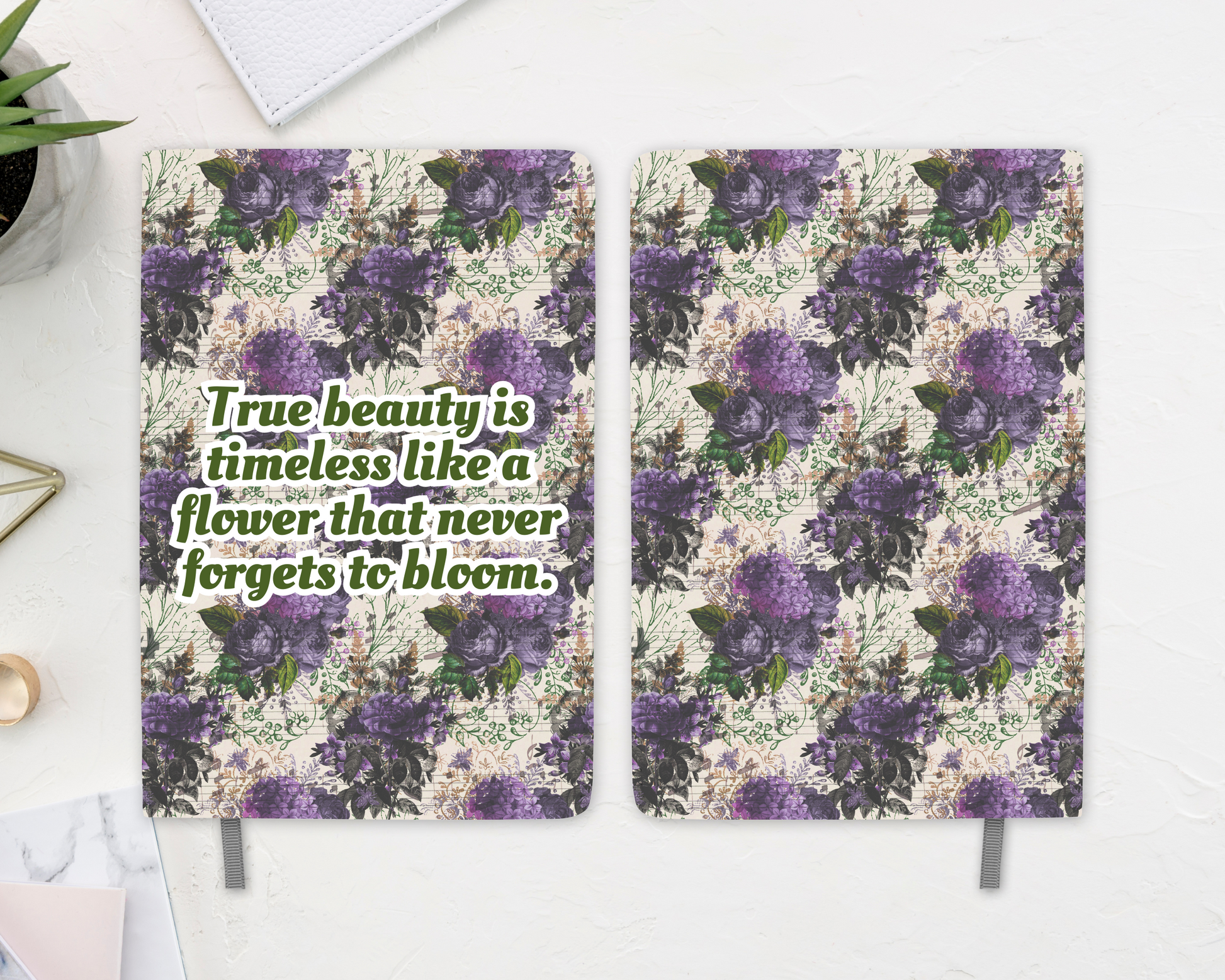 Celebrate elegance that never fades with this enchanting hardcover journal. Wrapped in a soft vintage cream background and adorned with clusters of rich purple and violet blooms, the design evokes both romance and resilience.